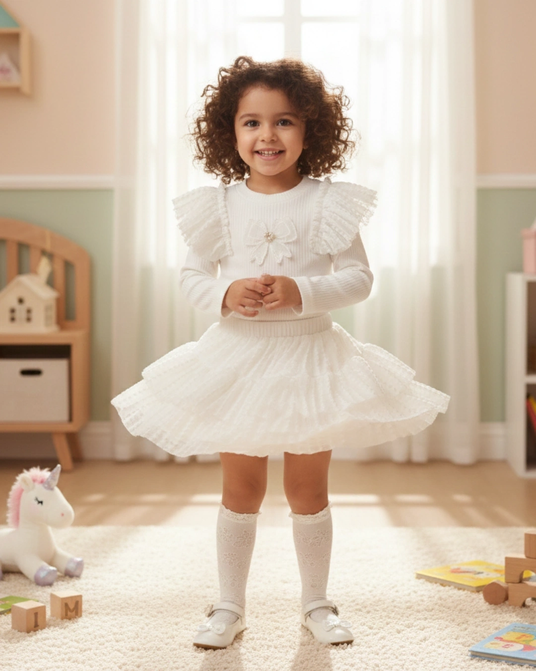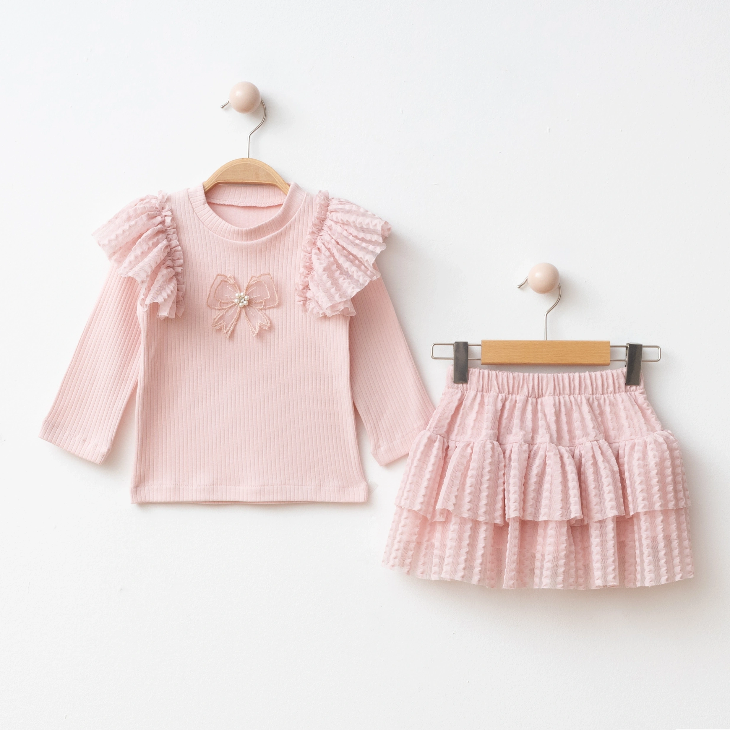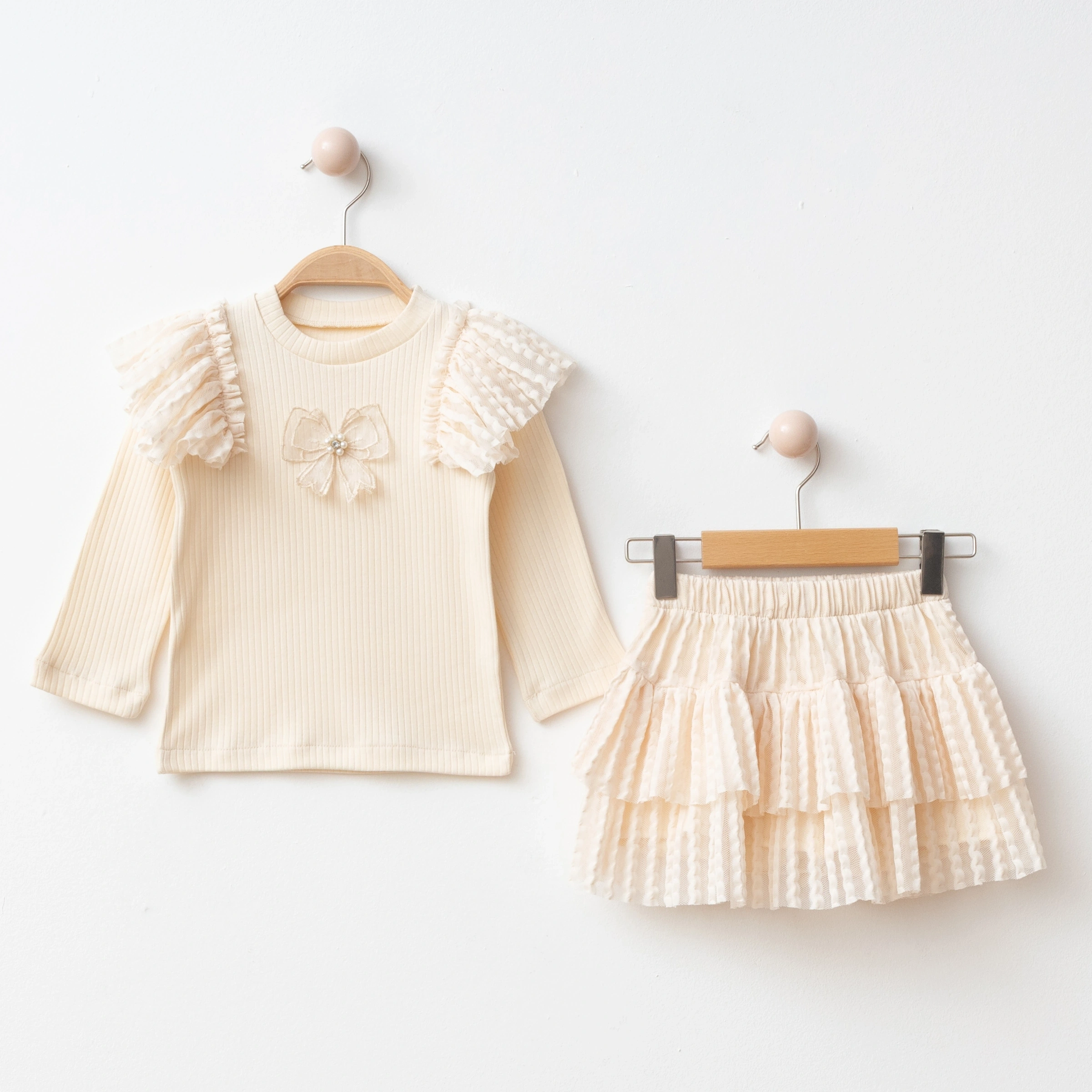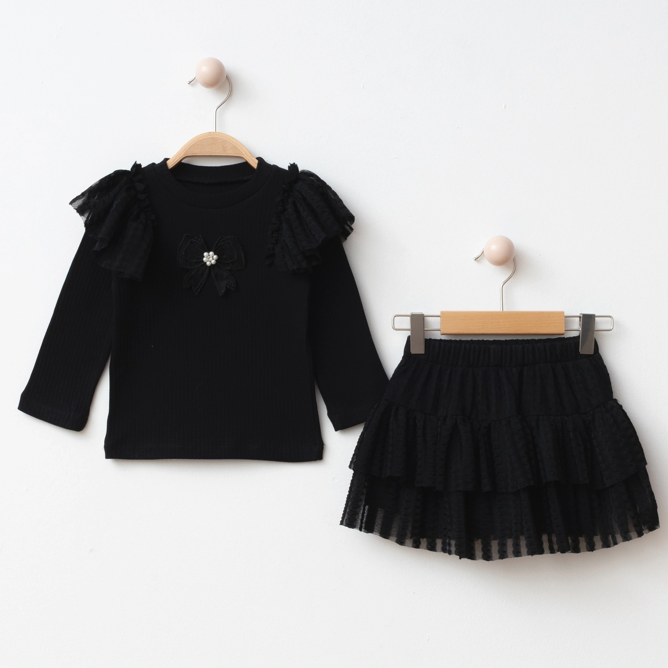 1 Adet Uzun Kollu Volanlı Üst + 1 Adet Kat Kat Tütülü Etek.