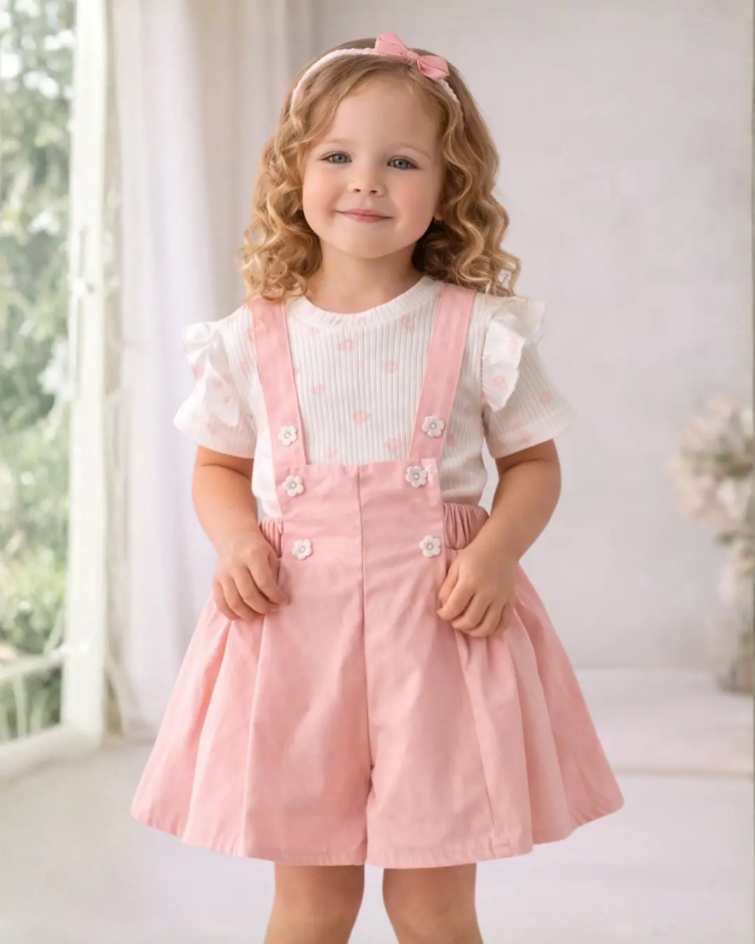 Zarif ve sevimli tasarımıyla öne çıkan Mina kız çocuk 2’li takım, günlük kullanım ve özel anlar için ideal bir kombin sunar. Fitilli dokulu, fırfır kol detaylı bluz ile askılı şort etek tasarımı çocuklara hem rahatlık hem de şık bir görünüm kazandırır.