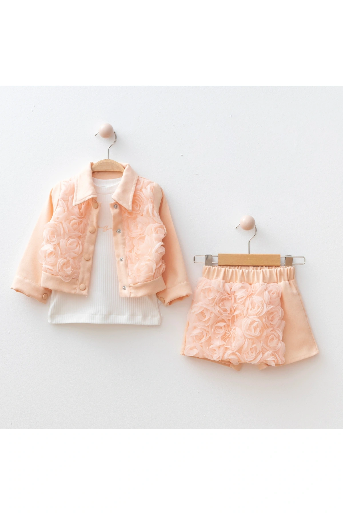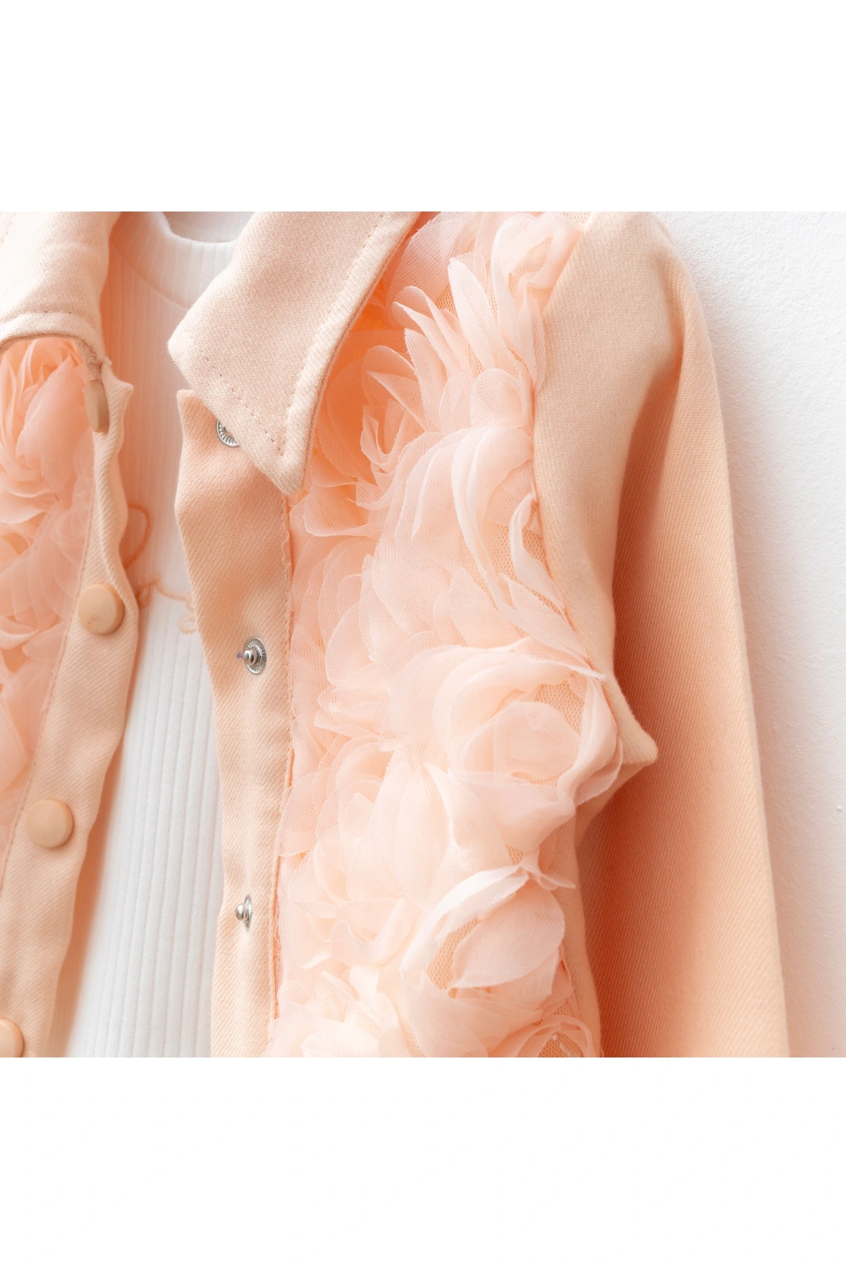 - 2-5 yaş arası kız çocukları için ideal, casual ve günlük kullanıma uygun 3'lü takım. - Standart kol tipi ve uzun kol boyu ile mevsim geçişlerinde rahatlık sağlar. - Geniş paça şortu, hareket özgürlüğü sunarken şık bir görünüm kazandırır. - 2 iplik penye dokuma tipi, orta kalınlıkta kumaşı sayesinde konforlu bir kullanım vaat eder. - Full düğme kapama detayı ile kolay giydirme ve çıkarmayı mümkün kılar. - Ceket yaka tasarımı ve kemersiz siluetiyle modern ve şık bir görünüm sunar. - Mix nakış tekniği ile işlemeli detaylar, ürüne estetik bir dokunuş katar. - Astarlı yapısı sayesinde ekstra konfor ve dayanıklılık sağlar. - Denim kumaş tipi, dayanıklılığı artırarak uzun süreli kullanım imkanı tanır. - Çiçekli deseni ile neşeli ve canlı bir stil oluşturur