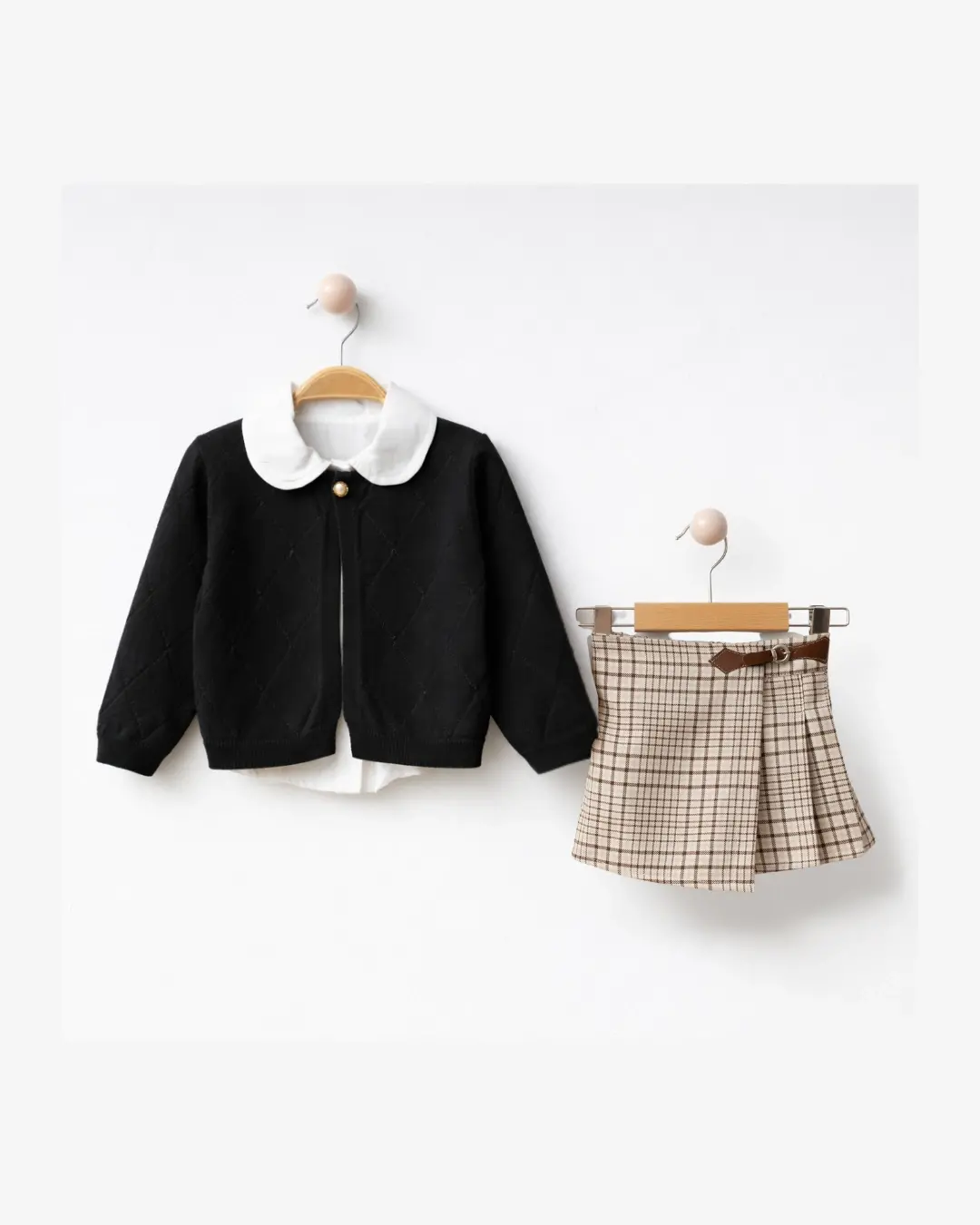 My Lusa baby wear Ece I Triko Hırka, Gömlek ve Etek Görünümlü Şort 3'lü Kombin I 2-5 Yaş