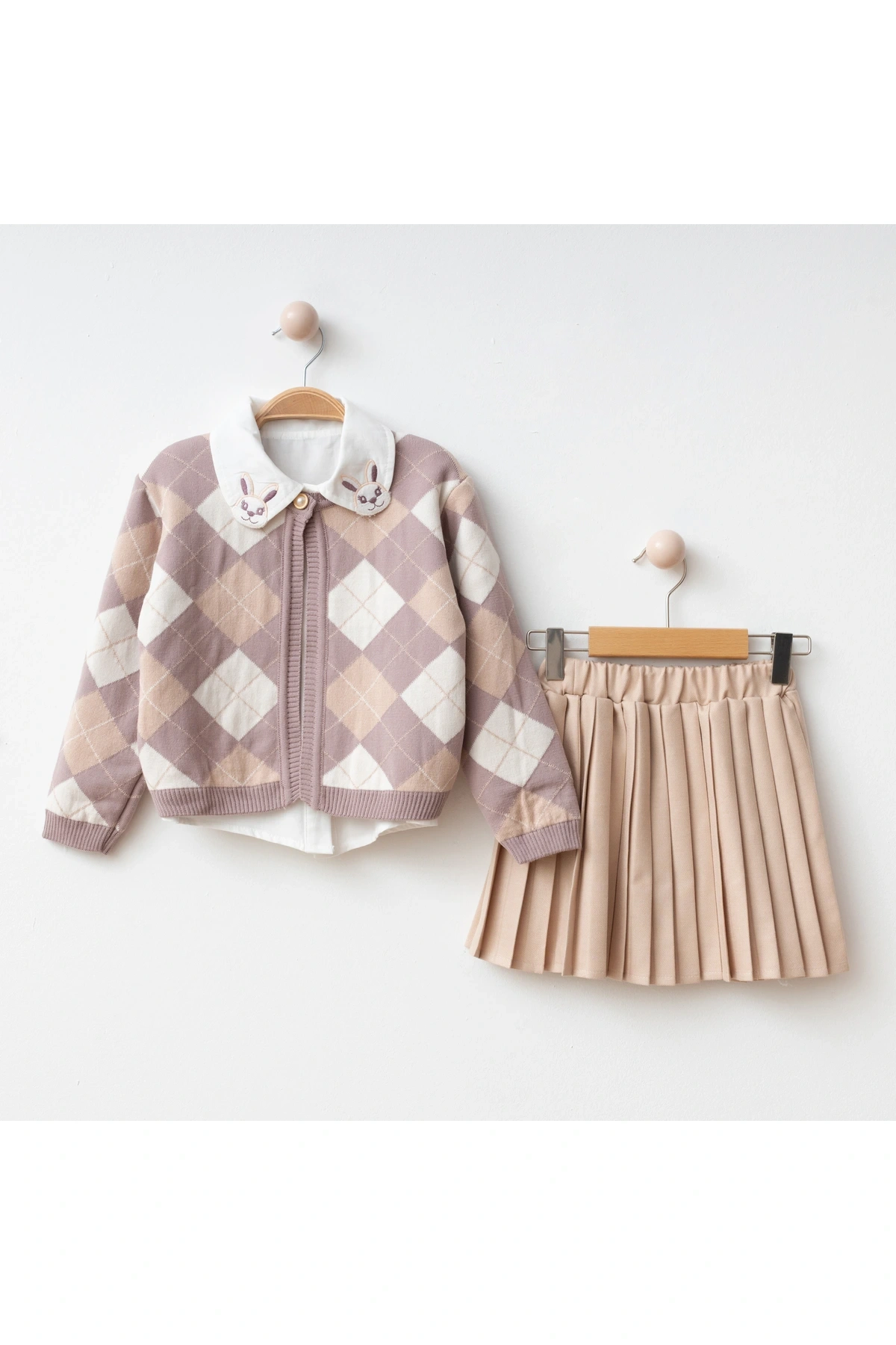 - Kış aylarında sıcak tutan kalın dokuma tipi triko kumaştan üretilmiştir.; - Casual ve günlük kullanım için ideal, rahat kesimiyle çocukların hareket özgürlüğünü kısıtlamaz.; - Ceket-etek takımı olarak sunulan bu set, hem şıklığı hem de fonksiyonelliği bir arada sunar.; - Geniş paça tasarımı ile konforlu bir kullanım sağlar ve pileli siluetiyle modern bir görünüm kazandırır.; - Mono kapama şekli sayesinde kolayca giyilip çıkartılabilir ve pratik kullanım sunar.; - Mix nakış detaylarıyla zenginleştirilmiş peluş dokunuşlar, ürüne ekstra bir şıklık katarken çocukların ilgisini çeker.; - Gömlek yaka tasarımı ile klasik ve zamansız bir stil oluştururken kemersiz tasarımı sayesinde rahat hareket etme imkanı tanır.; - Astarlı yapısı ile soğuk havalarda ekstra koruma sağlar ve iç sıcaklığın korunmasına yardımcı olur.; - TR menşei garantisiyle Türk kalitesi ve işçiliğini yansıtır.;