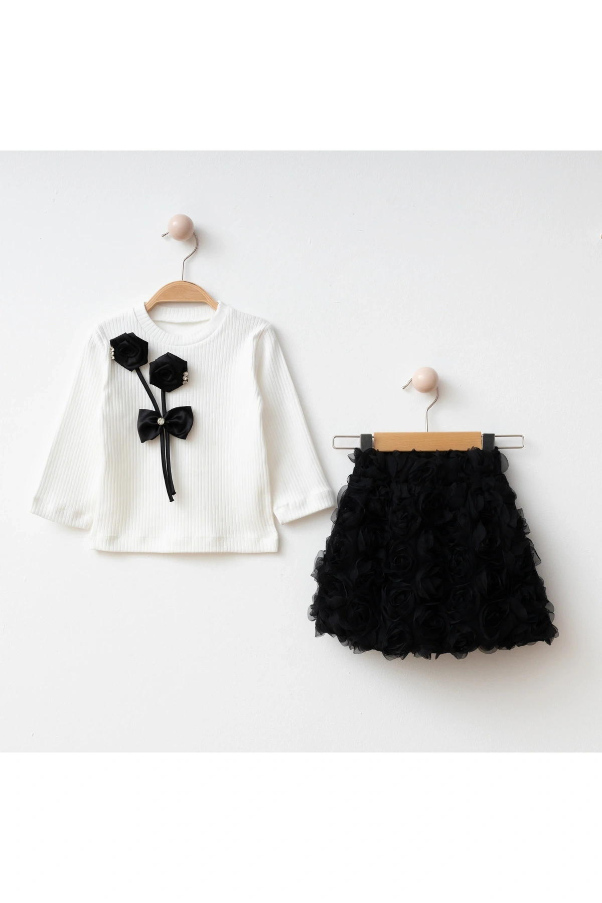 My Lusa baby wear Tüllü Etekli Özel Tasarım Gül Detaylı Kız Çocuk Kombini- 2/3/4/5 Yaş